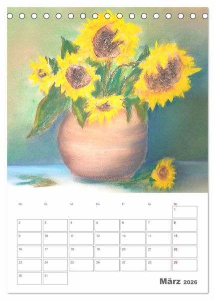 März: Sonnenblumenstrauß mit Pastellkreiden