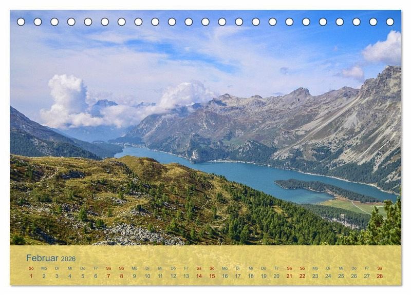 Naturliebhaber, Wanderbegeisterte und Fotografen kommen im Oberengadin gleichermaßen auf ihre Kosten. Der Fotokalender zeigt traumhafte Ansichten dieser wunderschönen Schweizer Berglandschaft. Lassen auch Sie sich von bezaubernden Ausblicken, glasklaren Bergseen und schmalen Wanderpfaden begeistern.