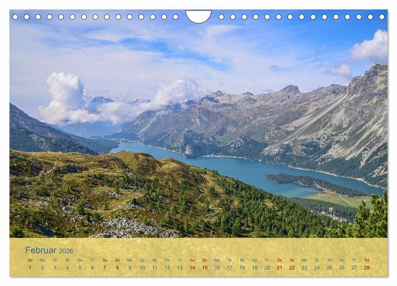 Naturliebhaber, Wanderbegeisterte und Fotografen kommen im Oberengadin gleichermaßen auf ihre Kosten. Der Fotokalender zeigt traumhafte Ansichten dieser wunderschönen Schweizer Berglandschaft. Lassen auch Sie sich von bezaubernden Ausblicken, glasklaren Bergseen und schmalen Wanderpfaden begeistern.