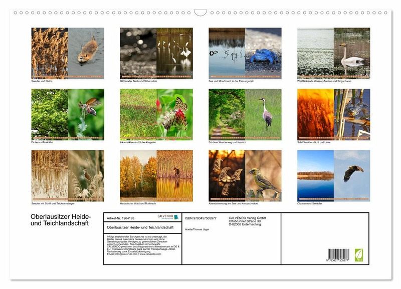 QUALITÄT - Hochwertiger Fotokalender mit 12 wunderschönen Motiven auf lichtbeständigem Bilderdruckpapier, robuste Spiralbindung mit Aufhängebügel.NACHHALTIG - deutliche Abfallreduzierung durch bedarfsgerechte Einzelstückfertigung, umweltfreundliches FSC-zertifiziertes Papier, Produktion in Deutschland, klimabewusste Logistik.PERFEKTES GESCHENK - Kalender für Freunde und Familie, für Kinder und Erwachsene, jung und alt, zu Weihnachten, Geburtstag oder zwischendurch.VIELFALT - Bildkalender in verschiedenen Formaten, z.B. DIN A5, DIN A4, DIN A3 sowie DIN A2. Ob Naturmotiv, Gemälde oder Fotos, ideal für ein persönliches Wohlfühlambiente.Pflanzen und Tiere der Oberlausitzer Heide- und Teichlandschaft von Autor(in): Anette Jäger