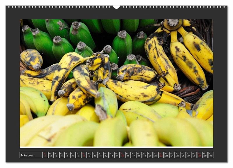 Ein Rundgang über den Bauernmarkt in der Altstadt von Funchal / Madeira in 13 Kalenderblättern für das ganze Jahr. Auf dem Markt findet man ein großes Angebot an Blumen, Obst, Gemüse, Fisch bis hin zu Leder- und Korbwaren. Hier ein Auszug des Angebotes an Obst und Gemüse.