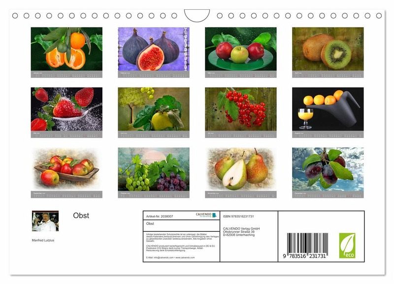 QUALITÄT - Hochwertiger Fotokalender mit 12 wunderschönen Motiven auf lichtbeständigem Bilderdruckpapier, robuste Spiralbindung mit Aufhängebügel.NACHHALTIG - deutliche Abfallreduzierung durch bedarfsgerechte Einzelstückfertigung, umweltfreundliches FSC-zertifiziertes Papier, Produktion in Deutschland, klimabewusste Logistik.PERFEKTES GESCHENK - Kalender für Freunde und Familie, für Kinder und Erwachsene, jung und alt, zu Weihnachten, Geburtstag oder zwischendurch.VIELFALT - Bildkalender in verschiedenen Formaten, z.B. DIN A5, DIN A4, DIN A3 sowie DIN A2. Ob Naturmotiv, Gemälde oder Fotos, ideal für ein persönliches Wohlfühlambiente.Schönheit der Obstfrüchte von Autor(in): Manfred Lutzius
