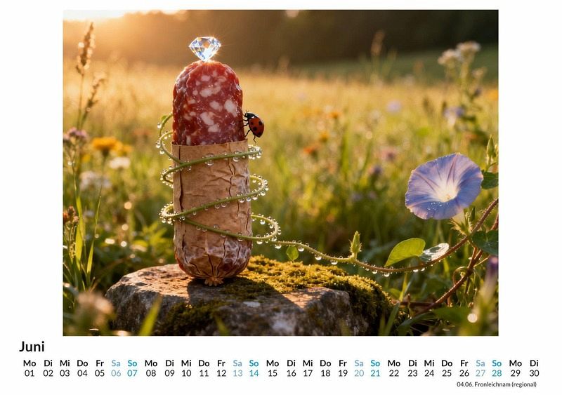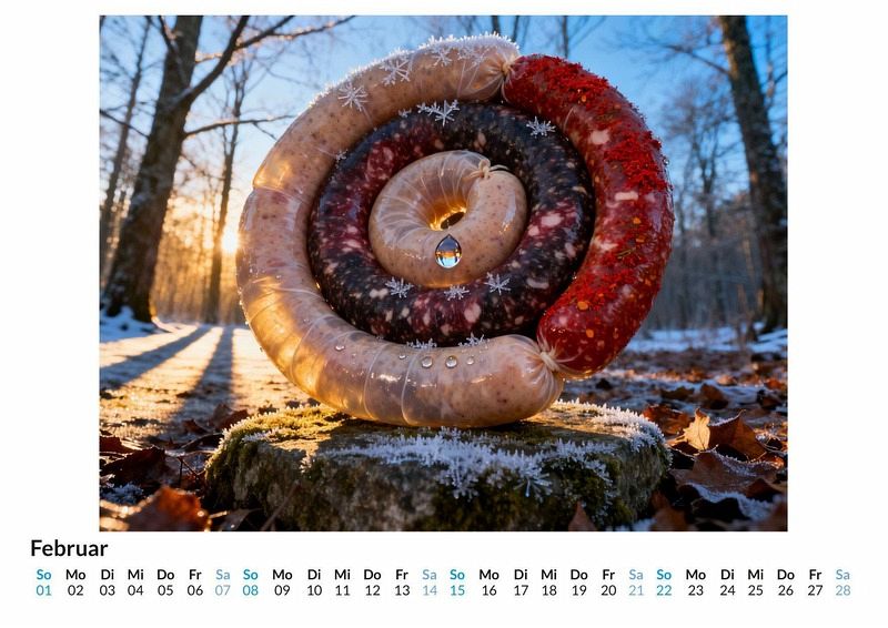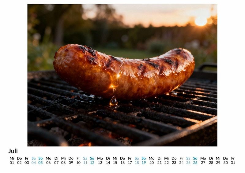 Eine Hommage an das Alltägliche, verwandelt in das Außergewöhnliche. Der Kalender "Ode an die Wurst" zelebriert die bescheidene Wurst als Protagonistin kunstvoller Szenerien. Er bricht mit gewohnten Sehweisen und präsentiert Salami, Mortadella und Co. in Kompositionen, die zum Schmunzeln und Nachdenken anregen. Dieser Kalender ist eine ausgezeichnete Wahl: * Für Liebhaber des unkonventionellen Designs und skurrilen Humors. * Für alle, die in der Küche und darüber hinaus das Besondere suchen. * Als originelles Geschenk für Freunde mit Sinn für das Ausgefallene. Jeder Monat enthüllt ein neues Arrangement, in dem Wurstwaren zu Landschaften, Mustern oder surrealen Stillleben werden. Diese Motive entspringen einer digitalen Muse, die aus unzähligen visuellen Impulsen völlig neue Bildwelten erschafft. So entsteht ein Dialog zwischen dem Vertrauten und dem Fremden, der die Grenzen zwischen Kulinarik und Kunst spielerisch auslotet. Was der Kalender bietet: * Zwölf Monatsmotive, die Wurst in einem völlig neuen Licht zeigen. * Ein praktischer Jahresplaner, der Monat für Monat für Gesprächsstoff sorgt. * Eine Sammlung von Bildern, die zwischen Kunst und kulinarischer Faszination balancieren. "Ode an die Wurst" ist mehr als nur ein Kalender, es ist ein Statement gegen die Monotonie im Alltag und eine Einladung, das Gewöhnliche neu zu entdecken. Ein Jahresbegleiter, der garantiert für Überraschungsmomente sorgt. Es lohnt sich, einen Blick auf die zwölf einzigartigen Kompositionen zu werfen.