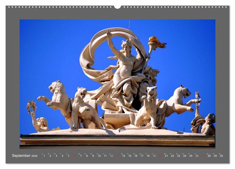 September: Muse Melpomene auf dem Hauptportal des Opernhauses