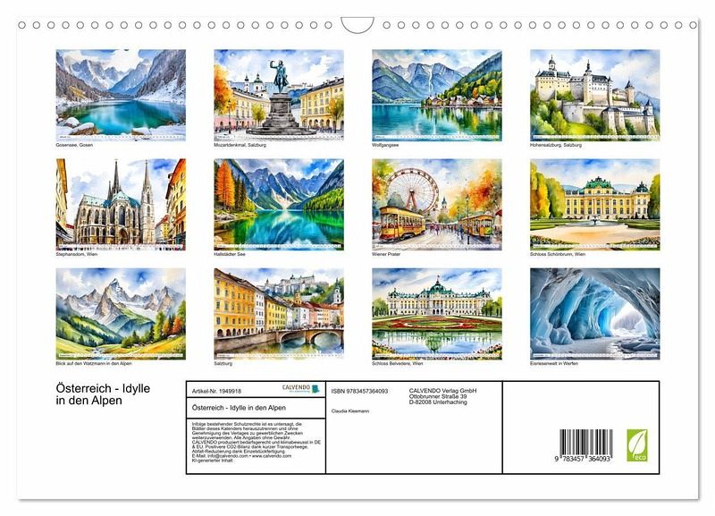 QUALITÄT - Hochwertiger Fotokalender mit 12 wunderschönen Motiven auf lichtbeständigem Bilderdruckpapier, robuste Spiralbindung mit Aufhängebügel.NACHHALTIG - deutliche Abfallreduzierung durch bedarfsgerechte Einzelstückfertigung, umweltfreundliches FSC-zertifiziertes Papier, Produktion in Deutschland, klimabewusste Logistik.PERFEKTES GESCHENK - Kalender für Freunde und Familie, für Kinder und Erwachsene, jung und alt, zu Weihnachten, Geburtstag oder zwischendurch.VIELFALT - Bildkalender in verschiedenen Formaten, z.B. DIN A5, DIN A4, DIN A3 sowie DIN A2. Ob Naturmotiv, Gemälde oder Fotos, ideal für ein persönliches Wohlfühlambiente.Zauberhafte Aquarelle von Natur und Architektur von Autor(in): Claudia Kleemann