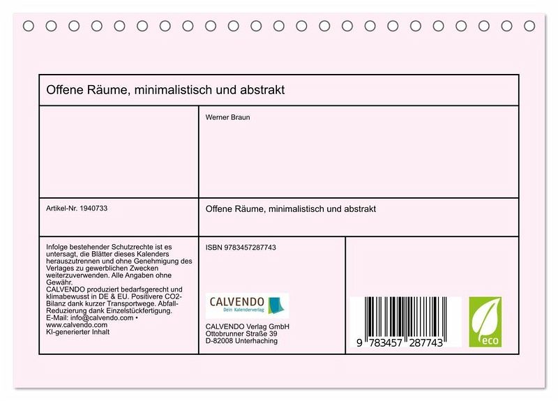 QUALITÄT - Hochwertiger Fotokalender mit 12 wunderschönen Motiven auf lichtbeständigem Bilderdruckpapier, robuste Spiralbindung.NACHHALTIG - deutliche Abfallreduzierung durch bedarfsgerechte Einzelstückfertigung, umweltfreundliches FSC-zertifiziertes Papier, Produktion in Deutschland, klimabewusste Logistik.PERFEKTES GESCHENK - Kalender für Freunde und Familie, für Kinder und Erwachsene, jung und alt, zu Weihnachten, Geburtstag oder zwischendurch.VIELFALT - Bildkalender in verschiedenen Formaten, z.B. DIN A5, DIN A4, DIN A3 sowie DIN A2. Ob Naturmotiv, Gemälde oder Fotos, ideal für ein persönliches Wohlfühlambiente.Raumbilder aus Geometrie und glatten Flächen von Autor(in): Pixbox