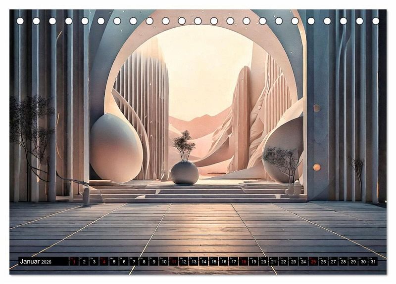 Entdecken wir eine Welt, in der die Schönheit der Natur auf minimalistische Klarheit trifft. Dieser einzigartige Kalender präsentiert 12 bemerkenswerte Bilder von Räumen, die die Grenzen zwischen Realität und Abstraktion verwischen. Jedes Bild ist ein Meisterwerk der Reduktion, in dem vertraute Naturelemente in elegante, glatte Formen verwandelt werden. Horizontale und vertikale Strukturen sind begradigt, um eine harmonische Balance zu schaffen, die das Auge beruhigt und den Geist befreit. Die Verwendung von KI in diesem Projekt ermöglicht es, die Essenz der Landschaft einzufangen und daraus neue faszinierende Formen zu schaffen. Die Bilder laden dazu ein, die Welt mit anderen Augen zu sehen und die Schönheit, aber auch die Kälte der Einfachheit zu entdecken.