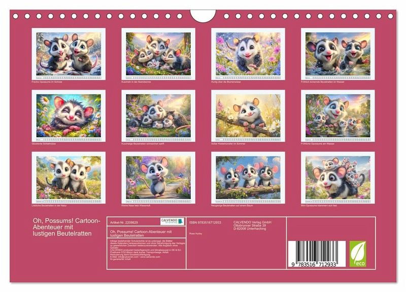 Dieser Kalender vereint Humor, Niedlichkeit und Lebensfreude. Jede Illustration wurde liebevoll mit der Hilfe von KI erstellt und zeigt die kleinen Beutelratten in witzigen und herzerwärmenden Szenen. Ein Kalender der Freude schenkt und sich perfekt als Geschenk für alle eignet, die Cartoons und Opossums lieben.