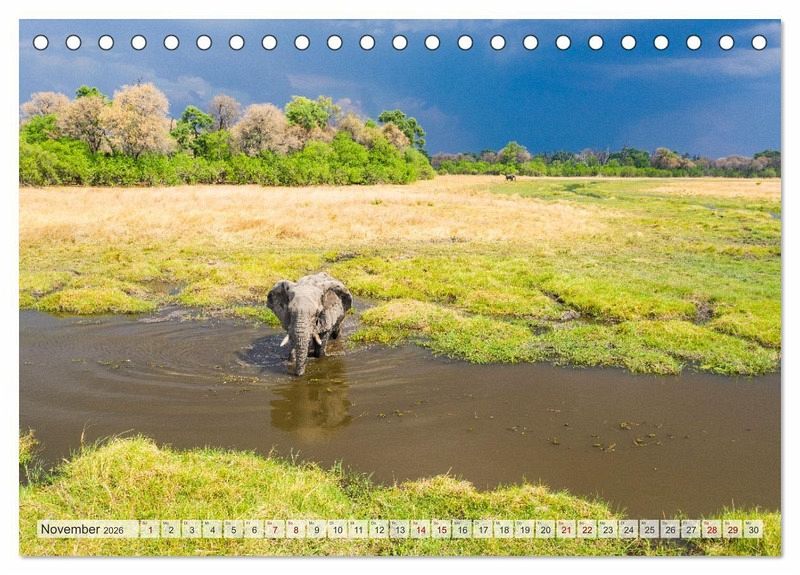 Das Binnendelta des Okavango-Flusses in Botswana ist eines der herausragendsten Safarigebiete Afrikas. In diesem Kalender fokussiert sich der österreichische Fotograf Guenter Guni jedoch weniger auf die Wildtiere, sondern auf die grandiosen Naturlandschaften von Okavango. Wenn auch die großen Elefantenherden der Region auch auf den Naturfotos nicht fehlen dürfen...