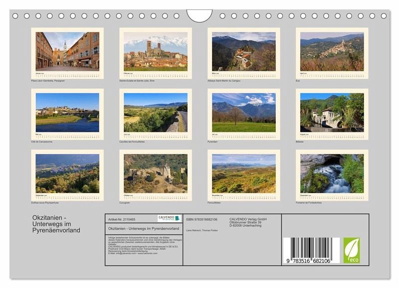 Mit diesem Kalender machen Sie eine spannende Reise durch das französische Pyrenäenvorland. Die Corbières, ein kleines Vorgebirge, sind dabei mit unvergleichlichen Landschaften und historischen Orten und Burgen ein Highlight. Die langgestreckte Bergkette der Pyrenäen bildet immer den südlichen Rahmen.