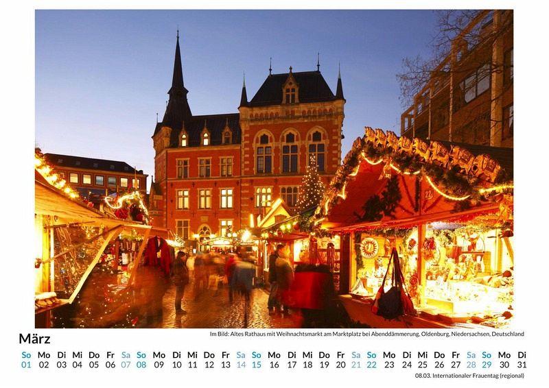 Entdecken Sie die charmante Stadt Oldenburg in all ihren Facetten mit unserem exklusiven Wandkalender! Lassen Sie sich Monat für Monat von 12 liebevoll ausgewählten Motiven verzaubern, die die Schönheit und Vielfalt dieser norddeutschen Perle einfangen. Gedruckt auf hochwertigem, lichtbeständigem Bilderdruckpapier, bringt dieser Kalender die malerischen Ansichten direkt in Ihr Zuhause. Nachhaltigkeit liegt uns am Herzen: Unsere Kalender werden in Deutschland auf FSC-zertifiziertem Papier produziert. Perfekt als Geschenk oder für die eigene Wand - holen Sie sich ein Stück Oldenburg in Ihr Leben und genießen Sie das ganze Jahr über unvergessliche Momente! Hochwertig Erleben Sie ein Jahr voller Eleganz mit unserem Premium-Fotokalender. Jedes der 12 Motive ist auf hochwertigem, lichtbeständigem Bilderdruckpapier gedruckt, um die Lebendigkeit jedes Bildes zu bewahren. Die robuste Spiralbindung gewährleistet Langlebigkeit und einfache Handhabung. Nachhaltig Unser Engagement für die Umwelt spiegelt sich in jedem Exemplar wider. Durch die Produktion auf Abruf reduzieren wir signifikant unseren Abfall. Wir verwenden ausschließlich umweltfreundliches, FSC-zertifiziertes Papier. Stolz gefertigt in Deutschland, achten wir bei unserer Logistik auf Klimaschutz, um unseren ökologischen Fußabdruck zu minimieren. Das ideale Geschenk Dieser Kalender ist das perfekte Präsent für jeden Anlass - ob Weihnachten, Geburtstage oder einfach als liebevolle Aufmerksamkeit zwischendurch. Geeignet für Freunde, Familie, Kinder und Erwachsene gleichermaßen, bereichert er jedes Zuhause mit seiner Vielfalt und Schönheit, unabhängig vom Alter der Beschenkten.