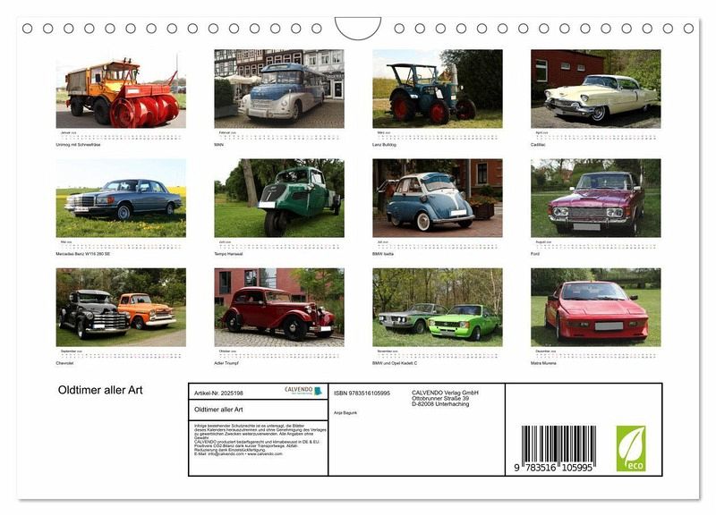 Ein toller Kalender mit einer vielseitigen Aufnahmen aus dem Reich der schicken alten Oldtimer.