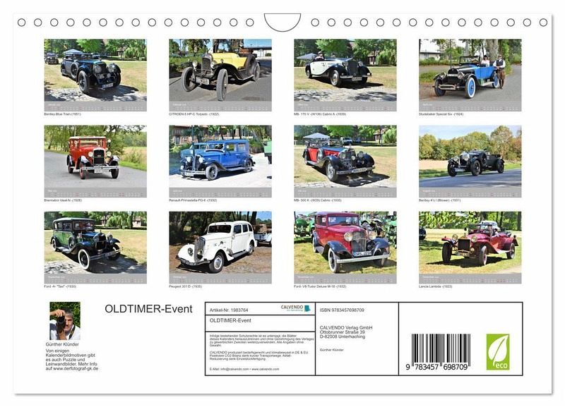 QUALITÄT - Hochwertiger Fotokalender mit 12 wunderschönen Motiven auf lichtbeständigem Bilderdruckpapier, robuste Spiralbindung mit Aufhängebügel.NACHHALTIG - deutliche Abfallreduzierung durch bedarfsgerechte Einzelstückfertigung, umweltfreundliches FSC-zertifiziertes Papier, Produktion in Deutschland, klimabewusste Logistik.PERFEKTES GESCHENK - Kalender für Freunde und Familie, für Kinder und Erwachsene, jung und alt, zu Weihnachten, Geburtstag oder zwischendurch.VIELFALT - Bildkalender in verschiedenen Formaten, z.B. DIN A5, DIN A4, DIN A3 sowie DIN A2. Ob Naturmotiv, Gemälde oder Fotos, ideal für ein persönliches Wohlfühlambiente.Oldtimer-PKW aus den frühen 30er von Autor(in): Günther Klünder
