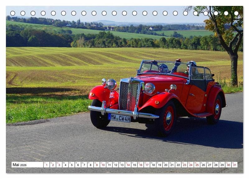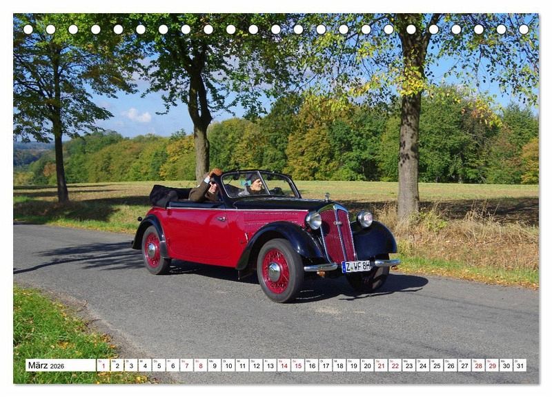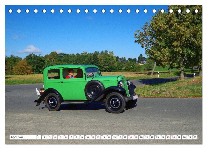 Die Aufnahmen der Kalenderblätter entstanden während der 50. Oldtimerrallye "Rund um den Rochlitzer Berg" bei der Fahrt durch Ortsteile der sächsischen Kleinstadt Colditz. Wunderschöne Herbstfarben und blauer Himmel mit weißen Wolken bilden den Hintergrund für Fahrer und Beifahrer der an der Rallye teilnehmenden Autos und Motorräder.