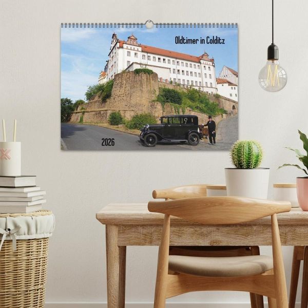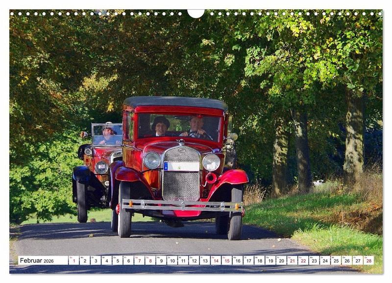 Die Aufnahmen der Kalenderblätter entstanden während der 50. Oldtimerrallye "Rund um den Rochlitzer Berg" bei der Fahrt durch Ortsteile der sächsischen Kleinstadt Colditz. Wunderschöne Herbstfarben und blauer Himmel mit weißen Wolken bilden den Hintergrund für Fahrer und Beifahrer der an der Rallye teilnehmenden Autos und Motorräder.