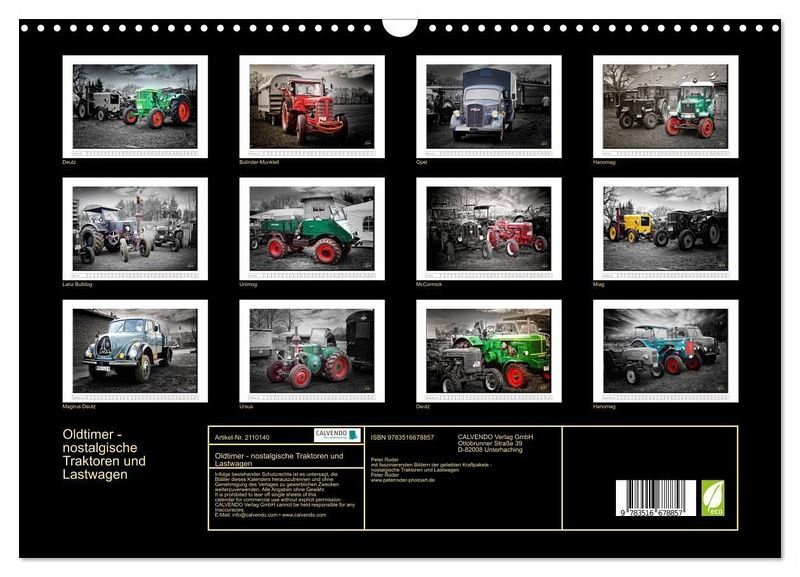 QUALITÄT - Hochwertiger Fotokalender mit 12 wunderschönen Motiven auf lichtbeständigem Bilderdruckpapier, robuste Spiralbindung mit Aufhängebügel.NACHHALTIG - deutliche Abfallreduzierung durch bedarfsgerechte Einzelstückfertigung, umweltfreundliches FSC-zertifiziertes Papier, Produktion in Deutschland, klimabewusste Logistik.PERFEKTES GESCHENK - Kalender für Freunde und Familie, für Kinder und Erwachsene, jung und alt, zu Weihnachten, Geburtstag oder zwischendurch.VIELFALT - Bildkalender in verschiedenen Formaten, z.B. DIN A5, DIN A4, DIN A3 sowie DIN A2. Ob Naturmotiv, Gemälde oder Fotos, ideal für ein persönliches Wohlfühlambiente.Nostalgische Traktoren und Lastwagen - geliebte Kraftpake, die viele in ihren Bann ziehen von Autor(in): Peter Roder