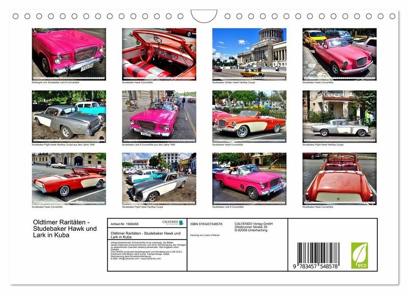 QUALITÄT - Hochwertiger Fotokalender mit 12 wunderschönen Motiven auf lichtbeständigem Bilderdruckpapier, robuste Spiralbindung mit Aufhängebügel.NACHHALTIG - deutliche Abfallreduzierung durch bedarfsgerechte Einzelstückfertigung, umweltfreundliches FSC-zertifiziertes Papier, Produktion in Deutschland, klimabewusste Logistik.PERFEKTES GESCHENK - Kalender für Freunde und Familie, für Kinder und Erwachsene, jung und alt, zu Weihnachten, Geburtstag oder zwischendurch.VIELFALT - Bildkalender in verschiedenen Formaten, z.B. DIN A5, DIN A4, DIN A3 sowie DIN A2. Ob Naturmotiv, Gemälde oder Fotos, ideal für ein persönliches Wohlfühlambiente.Studebaker-Modelle der 50er Jahre in Kuba von Autor(in): Henning von Loewis of Menar