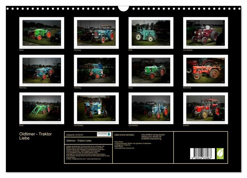 QUALITÄT - Hochwertiger Fotokalender mit 12 wunderschönen Motiven auf lichtbeständigem Bilderdruckpapier, robuste Spiralbindung mit Aufhängebügel.NACHHALTIG - deutliche Abfallreduzierung durch bedarfsgerechte Einzelstückfertigung, umweltfreundliches FSC-zertifiziertes Papier, Produktion in Deutschland, klimabewusste Logistik.PERFEKTES GESCHENK - Kalender für Freunde und Familie, für Kinder und Erwachsene, jung und alt, zu Weihnachten, Geburtstag oder zwischendurch.VIELFALT - Bildkalender in verschiedenen Formaten, z.B. DIN A5, DIN A4, DIN A3 sowie DIN A2. Ob Naturmotiv, Gemälde oder Fotos, ideal für ein persönliches Wohlfühlambiente.Nostalgische Traktoren - geliebte Kraftpake, die viele in ihren Bann ziehen von Autor(in): Peter Roder