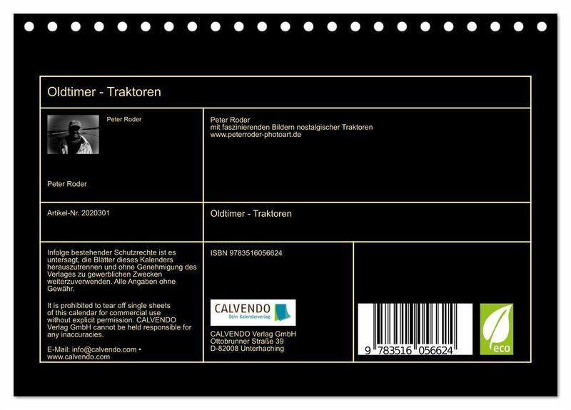 QUALITÄT - Hochwertiger Fotokalender mit 12 wunderschönen Motiven auf lichtbeständigem Bilderdruckpapier, robuste Spiralbindung.NACHHALTIG - deutliche Abfallreduzierung durch bedarfsgerechte Einzelstückfertigung, umweltfreundliches FSC-zertifiziertes Papier, Produktion in Deutschland, klimabewusste Logistik.PERFEKTES GESCHENK - Kalender für Freunde und Familie, für Kinder und Erwachsene, jung und alt, zu Weihnachten, Geburtstag oder zwischendurch.VIELFALT - Bildkalender in verschiedenen Formaten, z.B. DIN A5, DIN A4, DIN A3 sowie DIN A2. Ob Naturmotiv, Gemälde oder Fotos, ideal für ein persönliches Wohlfühlambiente.Nostalgische Traktoren - geliebte Kraftpakete, die viele in ihren Bann ziehen von Autor(in): Peter Roder