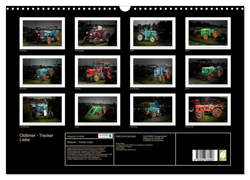 QUALITÄT - Hochwertiger Fotokalender mit 12 wunderschönen Motiven auf lichtbeständigem Bilderdruckpapier, robuste Spiralbindung mit Aufhängebügel.NACHHALTIG - deutliche Abfallreduzierung durch bedarfsgerechte Einzelstückfertigung, umweltfreundliches FSC-zertifiziertes Papier, Produktion in Deutschland, klimabewusste Logistik.PERFEKTES GESCHENK - Kalender für Freunde und Familie, für Kinder und Erwachsene, jung und alt, zu Weihnachten, Geburtstag oder zwischendurch.VIELFALT - Bildkalender in verschiedenen Formaten, z.B. DIN A5, DIN A4, DIN A3 sowie DIN A2. Ob Naturmotiv, Gemälde oder Fotos, ideal für ein persönliches Wohlfühlambiente.Nostalgische Trecker - geliebte Kraftpakete, die viele in ihren Bann ziehen von Autor(in): Peter Roder