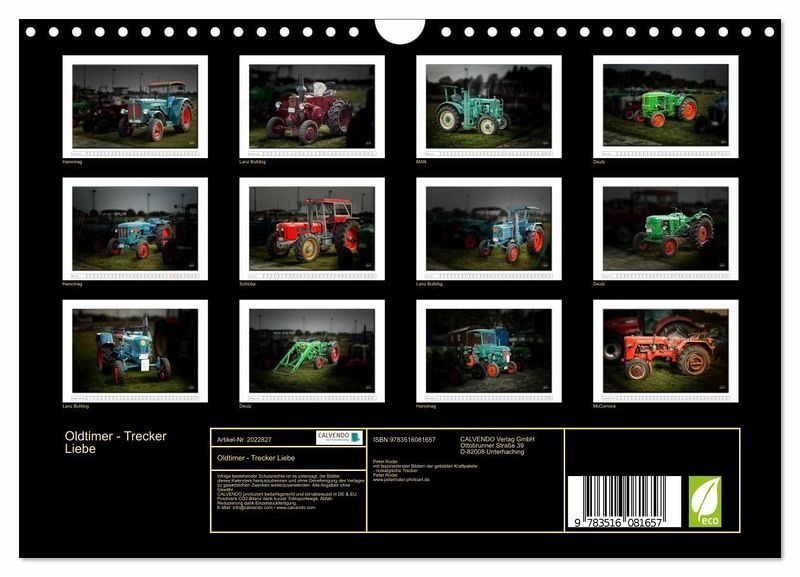 QUALITÄT - Hochwertiger Fotokalender mit 12 wunderschönen Motiven auf lichtbeständigem Bilderdruckpapier, robuste Spiralbindung mit Aufhängebügel.NACHHALTIG - deutliche Abfallreduzierung durch bedarfsgerechte Einzelstückfertigung, umweltfreundliches FSC-zertifiziertes Papier, Produktion in Deutschland, klimabewusste Logistik.PERFEKTES GESCHENK - Kalender für Freunde und Familie, für Kinder und Erwachsene, jung und alt, zu Weihnachten, Geburtstag oder zwischendurch.VIELFALT - Bildkalender in verschiedenen Formaten, z.B. DIN A5, DIN A4, DIN A3 sowie DIN A2. Ob Naturmotiv, Gemälde oder Fotos, ideal für ein persönliches Wohlfühlambiente.Nostalgische Trecker - geliebte Kraftpakete, die viele in ihren Bann ziehen von Autor(in): Peter Roder