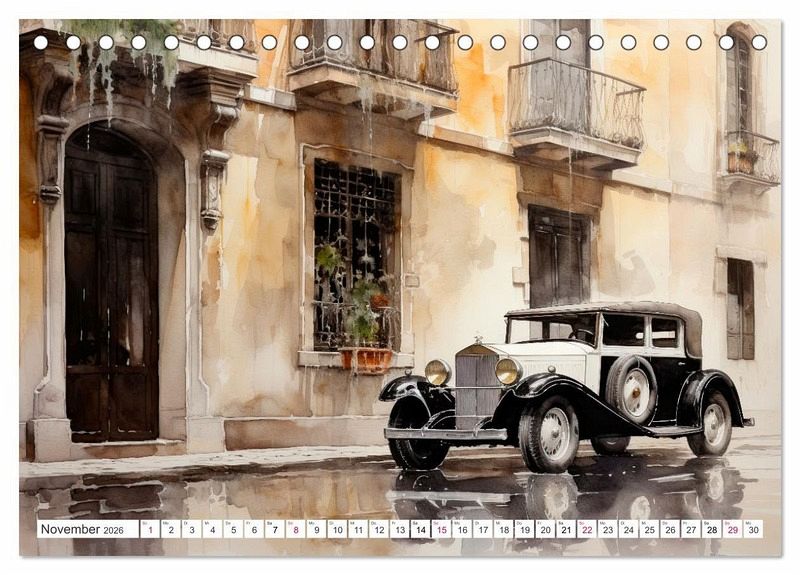 Wer liebt sie nicht, die ewige Schönheit von klassischen Oldtimern. Lassen Sie sich vom Vintage-Charme der exklusiven Oldtimer begeistern. Jedes Blatt erzählt die Geschichte einer vergangenen Ära, eingefangen in den stimmungsvollen Momenten eines Regentages. Der perfekte Begleiter für Liebhaber klassischer Automobile und Ästhetik. Die Bilder sind mit Unterstützung von KI entstanden und wurden mit Bildbearbeitungsprogrammen optimiert.