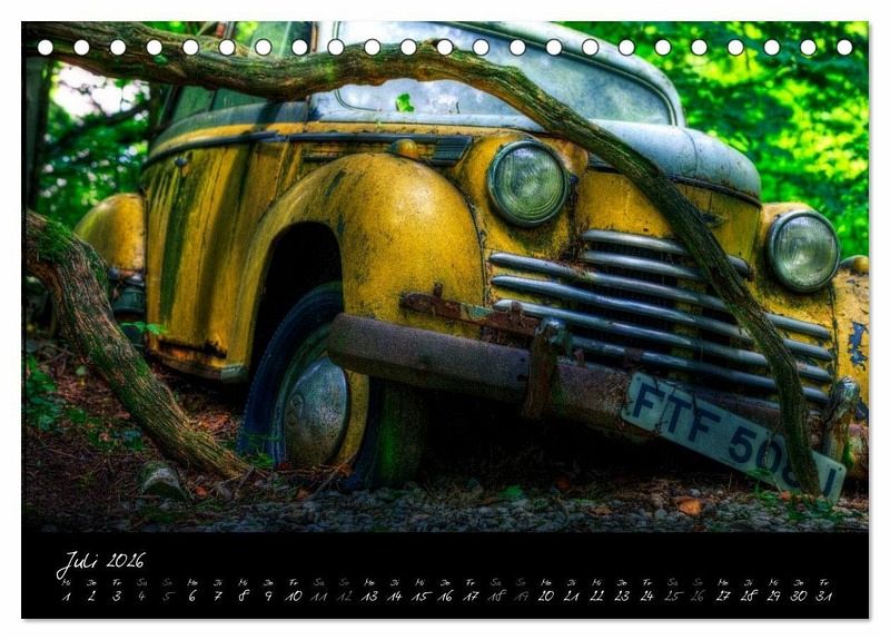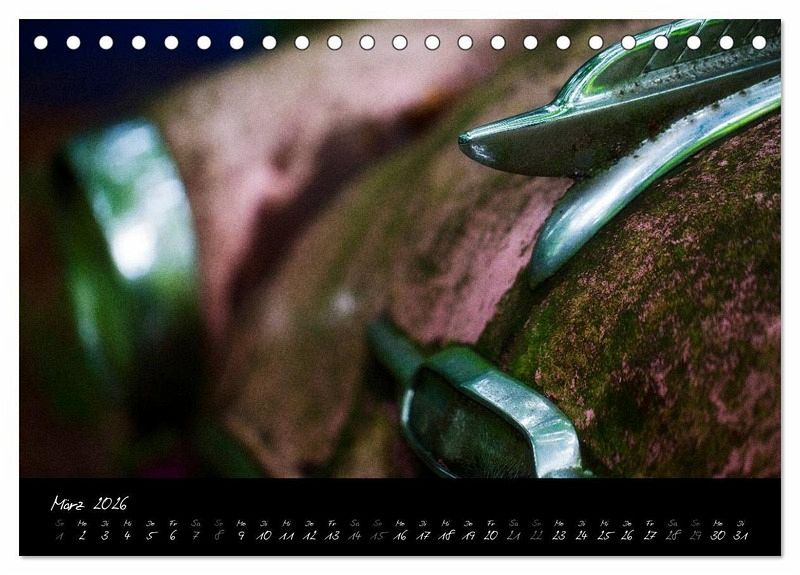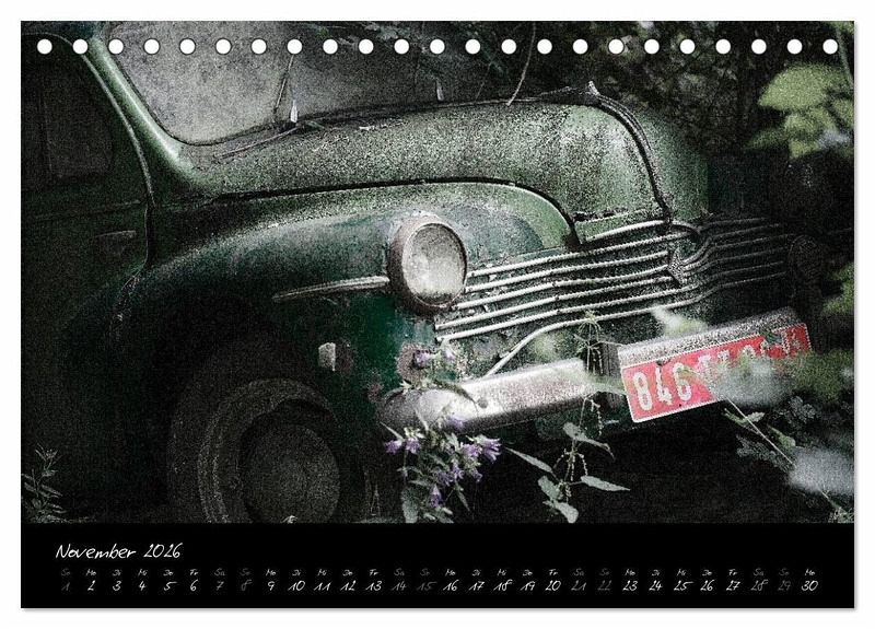 Dieser Kalender zeigt eine Reihe Bilder von ausgedienter Autos oder Teilaufnahmen. Diese stehen im freien Gelände und sind alle über 50 Jahre alt. In der Regel im Context mit der Natur. Hierbei kommt dem Spiel mit der Schärfentiefe eine entscheidende Rolle zu. Die Zeichen der Zeit werden zur Romantik umgestaltet. Ein Kalender nicht nur für Auto-oder Oldtimerfans.