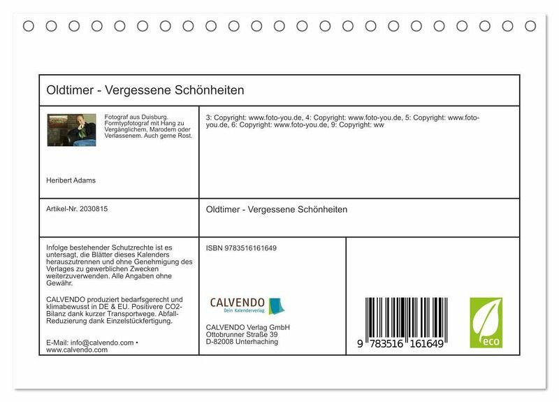 QUALITÄT - Hochwertiger Fotokalender mit 12 wunderschönen Motiven auf lichtbeständigem Bilderdruckpapier, robuste Spiralbindung.NACHHALTIG - deutliche Abfallreduzierung durch bedarfsgerechte Einzelstückfertigung, umweltfreundliches FSC-zertifiziertes Papier, Produktion in Deutschland, klimabewusste Logistik.PERFEKTES GESCHENK - Kalender für Freunde und Familie, für Kinder und Erwachsene, jung und alt, zu Weihnachten, Geburtstag oder zwischendurch.VIELFALT - Bildkalender in verschiedenen Formaten, z.B. DIN A5, DIN A4, DIN A3 sowie DIN A2. Ob Naturmotiv, Gemälde oder Fotos, ideal für ein persönliches Wohlfühlambiente.Fotografien abgesteller Oldtimern, zum Teil Detailaufnahmen von Autor(in): Heribert Adams - Lensviper