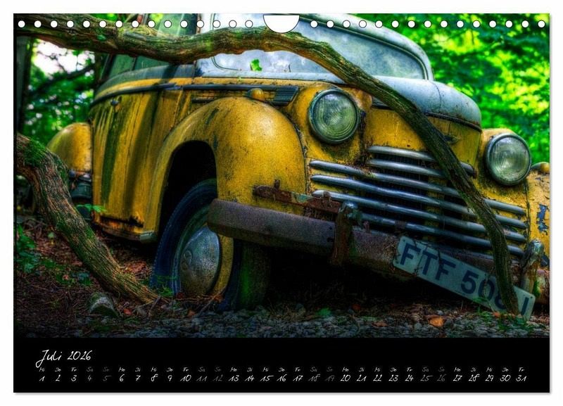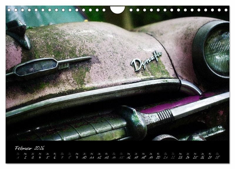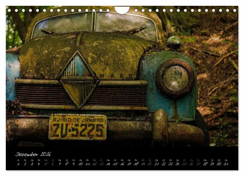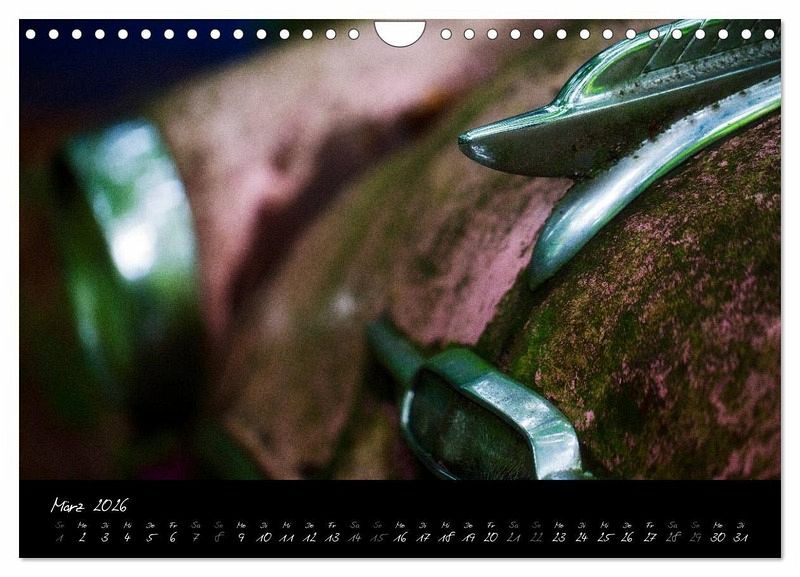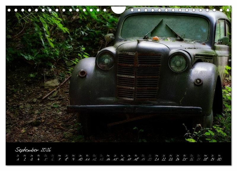 Dieser Kalender zeigt eine Reihe Bilder von ausgedienter Autos oder Teilaufnahmen. Diese stehen im freien Gelände und sind alle über 50 Jahre alt. In der Regel im Context mit der Natur. Hierbei kommt dem Spiel mit der Schärfentiefe eine entscheidende Rolle zu. Die Zeichen der Zeit werden zur Romantik umgestaltet. Ein Kalender nicht nur für Auto-oder Oldtimerfans.