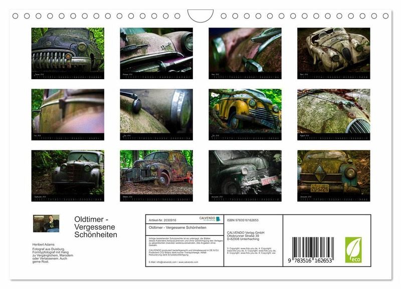 QUALITÄT - Hochwertiger Fotokalender mit 12 wunderschönen Motiven auf lichtbeständigem Bilderdruckpapier, robuste Spiralbindung mit Aufhängebügel.NACHHALTIG - deutliche Abfallreduzierung durch bedarfsgerechte Einzelstückfertigung, umweltfreundliches FSC-zertifiziertes Papier, Produktion in Deutschland, klimabewusste Logistik.PERFEKTES GESCHENK - Kalender für Freunde und Familie, für Kinder und Erwachsene, jung und alt, zu Weihnachten, Geburtstag oder zwischendurch.VIELFALT - Bildkalender in verschiedenen Formaten, z.B. DIN A5, DIN A4, DIN A3 sowie DIN A2. Ob Naturmotiv, Gemälde oder Fotos, ideal für ein persönliches Wohlfühlambiente.Fotografien abgesteller Oldtimern, zum Teil Detailaufnahmen von Autor(in): Heribert Adams - Lensviper