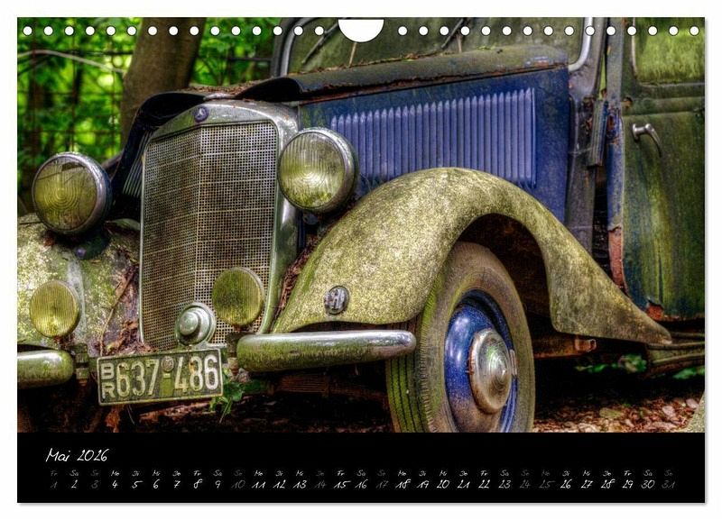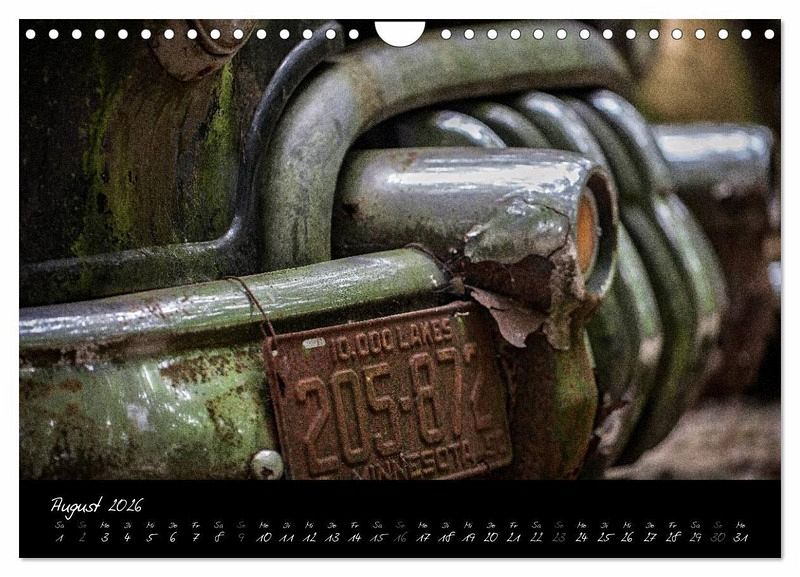 Dieser Kalender zeigt Fotografien von alten PKW zum Teil in Nahaufnahme. Abgestellte Fahrzeuge im Kontext mit der Natur. Der festgehaltene marode Verfall hat neben der schönen und hochwertigen fotografischen Seite, durchaus einen romantischen Charakter. Auch ein Kalender für nicht Oldtimerfans.