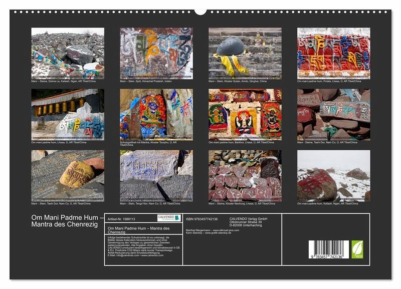 PREMIUM-LINIE - Brillanter Fotokalender mit 12 wunderschönen Motiven, Kunstdruck in Hochglanz in Museumsqualität.QUALITÄT - edle Materialien, stabile Rückwand mit 2 innovativen Einstecktaschen für eine optimale Präsentation an der Wand.NACHHALTIG - deutliche Abfallreduzierung durch bedarfsgerechte Einzelstückfertigung, umweltfreundliches FSC-zertifiziertes Papier, Produktion in Deutschland, klimabewusste Logistik.PERFEKTES GESCHENK - Kalender für Freunde und Familie, für Kinder und Erwachsene, jung und alt, zu Weihnachten, Geburtstag oder zwischendurch.Om mani padme hum ist ein Mantra in Sanskrit, heute das populärste Mantra des tibetischen Buddhismus von Autor(in): Manfred Bergermann