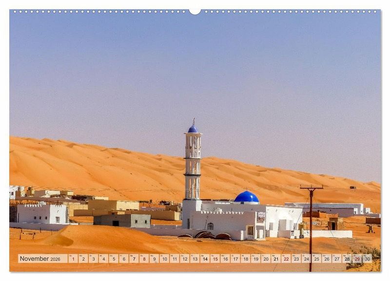 Ein beeindruckender Kalender, der die Schönheit des Omans mit seinen goldenen Wüsten, prunkvollen Gebäuden, historischen Festungen und atemberaubenden Küstenlandschaften einfängt.