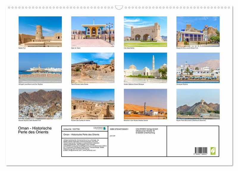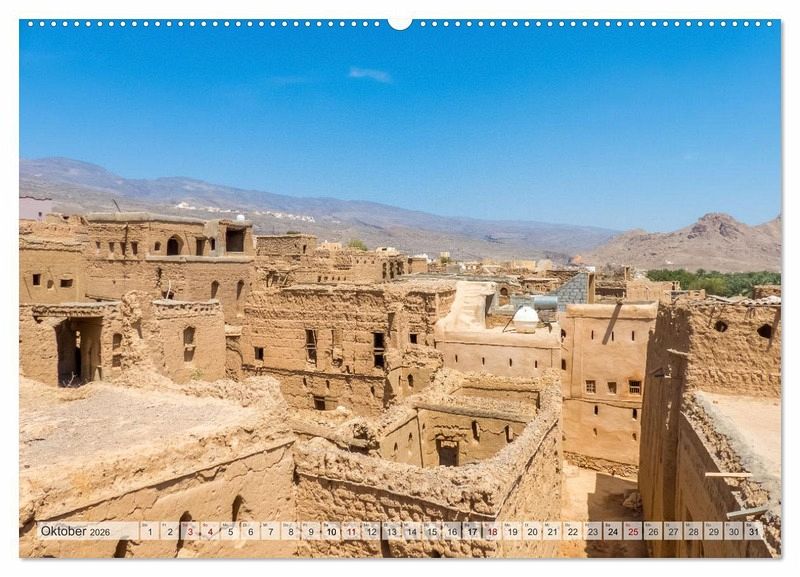 Ein beeindruckender Kalender, der die Schönheit des Omans mit seinen goldenen Wüsten, prunkvollen Gebäuden, historischen Festungen und atemberaubenden Küstenlandschaften einfängt.