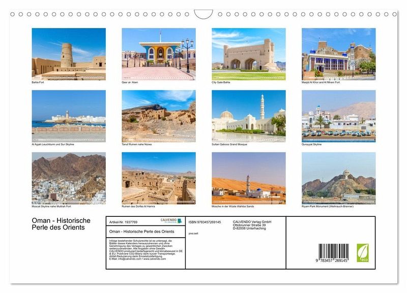 Ein beeindruckender Kalender, der die Schönheit des Omans mit seinen goldenen Wüsten, prunkvollen Gebäuden, historischen Festungen und atemberaubenden Küstenlandschaften einfängt.
