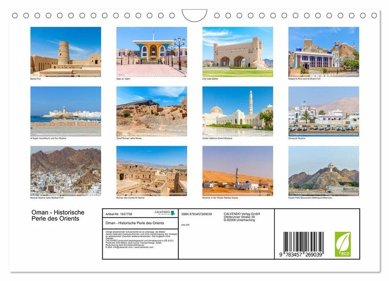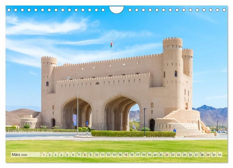 Ein beeindruckender Kalender, der die Schönheit des Omans mit seinen goldenen Wüsten, prunkvollen Gebäuden, historischen Festungen und atemberaubenden Küstenlandschaften einfängt.