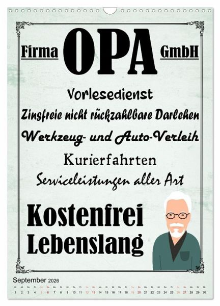 Der geliebte Opa, eine wunderbare Bereicherung des Familienlebens! Dieser Kalender ist eine phantastische Geschenkidee für den lieben Großvater. Jeden Monat ein netter Spruch, liebevoll im Handlettering-Stil gestaltet.