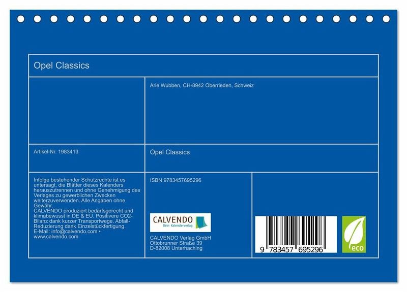 QUALITÄT - Hochwertiger Fotokalender mit 12 wunderschönen Motiven auf lichtbeständigem Bilderdruckpapier, robuste Spiralbindung.NACHHALTIG - deutliche Abfallreduzierung durch bedarfsgerechte Einzelstückfertigung, umweltfreundliches FSC-zertifiziertes Papier, Produktion in Deutschland, klimabewusste Logistik.PERFEKTES GESCHENK - Kalender für Freunde und Familie, für Kinder und Erwachsene, jung und alt, zu Weihnachten, Geburtstag oder zwischendurch.VIELFALT - Bildkalender in verschiedenen Formaten, z.B. DIN A5, DIN A4, DIN A3 sowie DIN A2. Ob Naturmotiv, Gemälde oder Fotos, ideal für ein persönliches Wohlfühlambiente.Leider sind die Zeiten des Zweikampfes zwischen Opel und Volkswagen schon lange vorbei. Was aber erhalten bleibt, sind die wunderschönen Oldtimer aus Rüsselsheim. Diese begleiten uns 2021 mit diesem Kalender. von Autor(in): Condorito1953