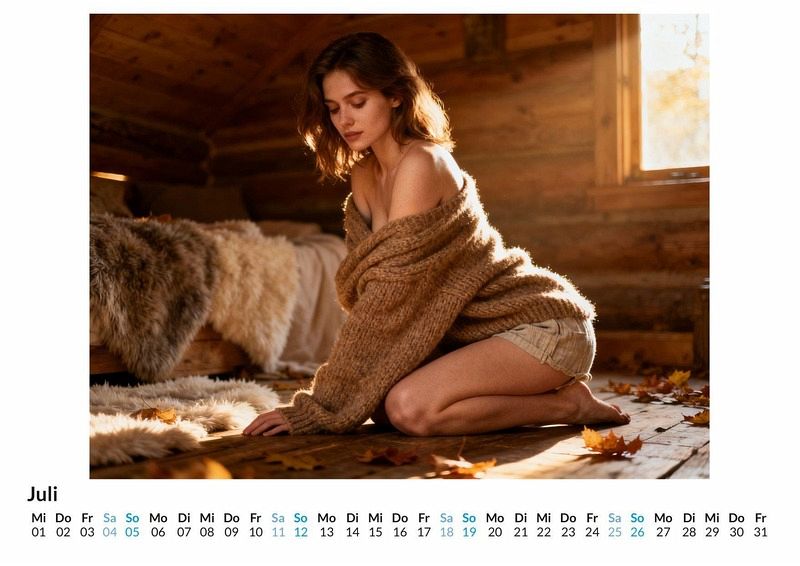 Hingabe und Verlangen, eingefangen in zwölf Momentaufnahmen. Der Kalender "Oral Sex" widmet sich einer der persönlichsten Formen der Zuneigung. Er präsentiert eine Serie von freizügigen und nahen Darstellungen, die den Akt in seiner ganzen Ästhetik zelebrieren. Dieser Kalender ist eine passende Wahl: Für Liebhaber erotischer Kunst, die das Besondere suchen. Für Menschen, die die Ästhetik und Sinnlichkeit des Oralsex schätzen. Für alle, die ein provokantes und stilvolles Geschenk benötigen. Jeder Monat enthüllt eine neue Szene, die den Fokus auf die Details legt: die Berührung der Lippen, die Spannung im Gesicht, die Geste der Hingabe. Die Bilder zeigen die lustvolle Kunst des Blowjobs aus einer nahen Perspektive, die sowohl die Handlung als auch die emotionale Verbindung spürbar macht. Jede Komposition wurde durch einen digitalen Schöpfungsprozess zum Leben erweckt, um eine einzigartige visuelle Erfahrung zu schaffen, die über traditionelle Fotografie hinausgeht und neue ästhetische Möglichkeiten erkundet. Was der Kalender bietet: Zwölf Monatsblätter mit expliziten Nahaufnahmen. Ein Wandkalender für das kommende Jahr. Eine Sammlung von Darstellungen, die Sinnlichkeit und Hingabe zeigen. Zusammenfassend ist der Kalender "Oral Sex" eine Hommage an die Lust und die tiefe Verbindung zwischen zwei Menschen, ausgedrückt durch eine der ursprünglichsten Gesten des Verlangens. Die Sammlung von Bildern lädt zum Betrachten und Entdecken ein, wobei jeder Monat eine neue Facette der Sinnlichkeit offenbart. Eine Reise durch ein Jahr voller Leidenschaft und Ästhetik erwartet den Betrachter, der sich auf diese besondere visuelle Erzählung einlässt.