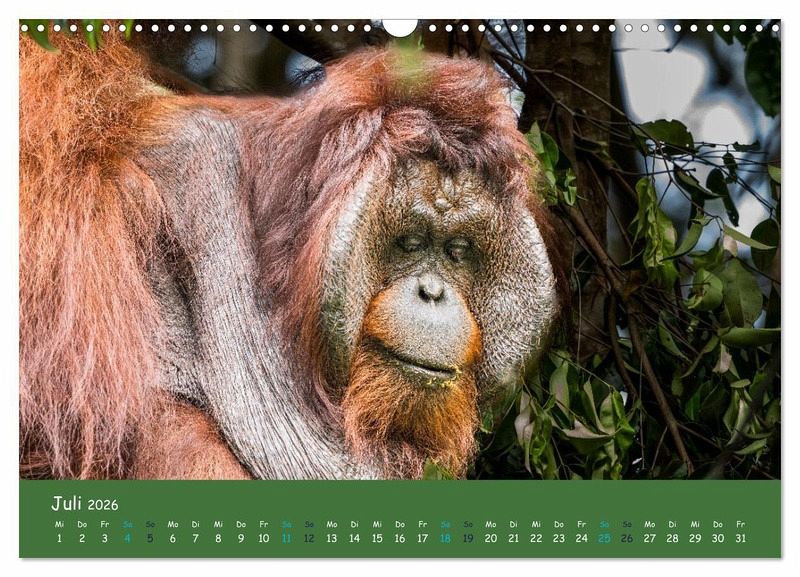 Tauchen Sie ein in den Dschungel mit diesem exklusiven Kalender, der die majestätischen Orang-Utans in ihrer natürlichen Umgebung präsentiert. Jeder Monat zeigt atemberaubende Bilder dieser intelligenten und einfühlsamen Wesen, die uns an die Bedeutung des Naturschutzes erinnern.