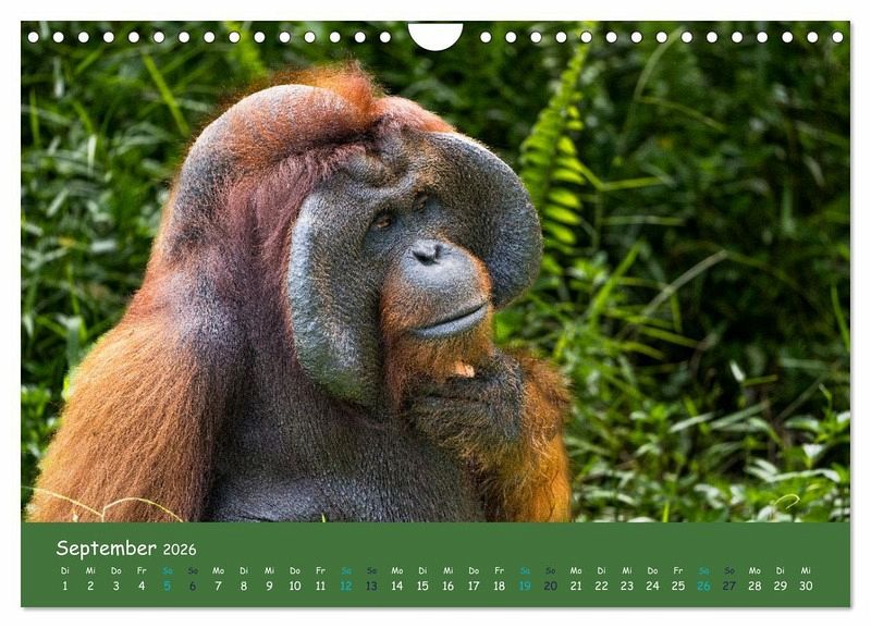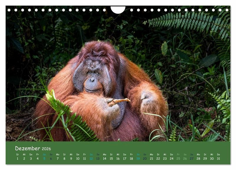 Tauchen Sie ein in den Dschungel mit diesem exklusiven Kalender, der die majestätischen Orang-Utans in ihrer natürlichen Umgebung präsentiert. Jeder Monat zeigt atemberaubende Bilder dieser intelligenten und einfühlsamen Wesen, die uns an die Bedeutung des Naturschutzes erinnern.