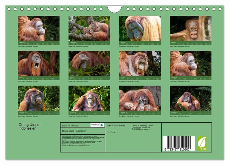 QUALITÄT - Hochwertiger Fotokalender mit 12 wunderschönen Motiven auf lichtbeständigem Bilderdruckpapier, robuste Spiralbindung mit Aufhängebügel.NACHHALTIG - deutliche Abfallreduzierung durch bedarfsgerechte Einzelstückfertigung, umweltfreundliches FSC-zertifiziertes Papier, Produktion in Deutschland, klimabewusste Logistik.PERFEKTES GESCHENK - Kalender für Freunde und Familie, für Kinder und Erwachsene, jung und alt, zu Weihnachten, Geburtstag oder zwischendurch.VIELFALT - Bildkalender in verschiedenen Formaten, z.B. DIN A5, DIN A4, DIN A3 sowie DIN A2. Ob Naturmotiv, Gemälde oder Fotos, ideal für ein persönliches Wohlfühlambiente.Orang Utans - aufgenommen in Kalimantan/Indonesien von Autor(in): Heike Newinger