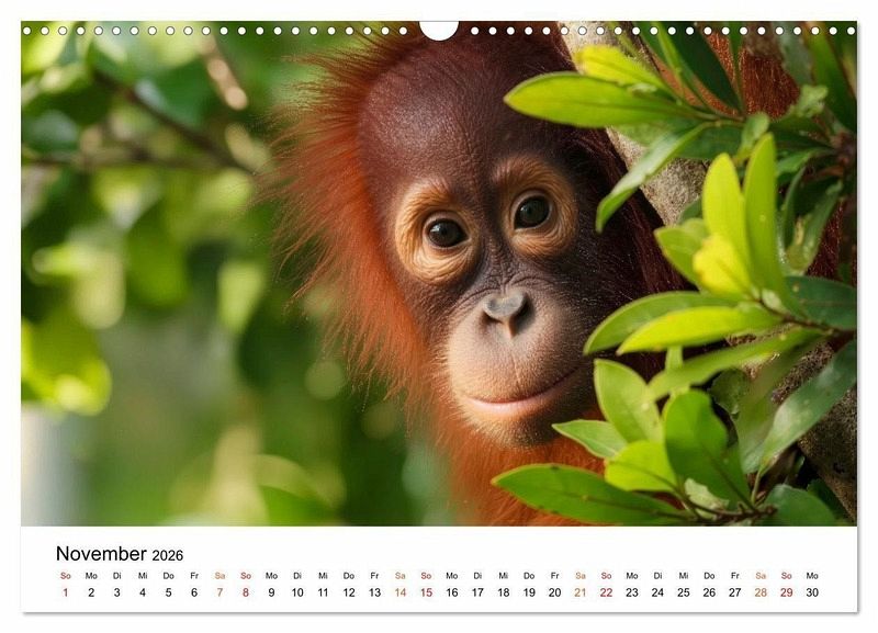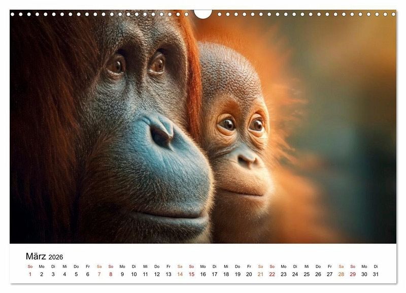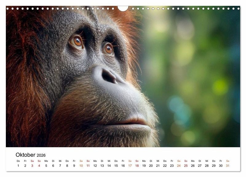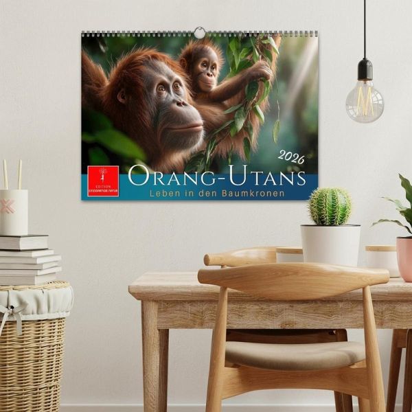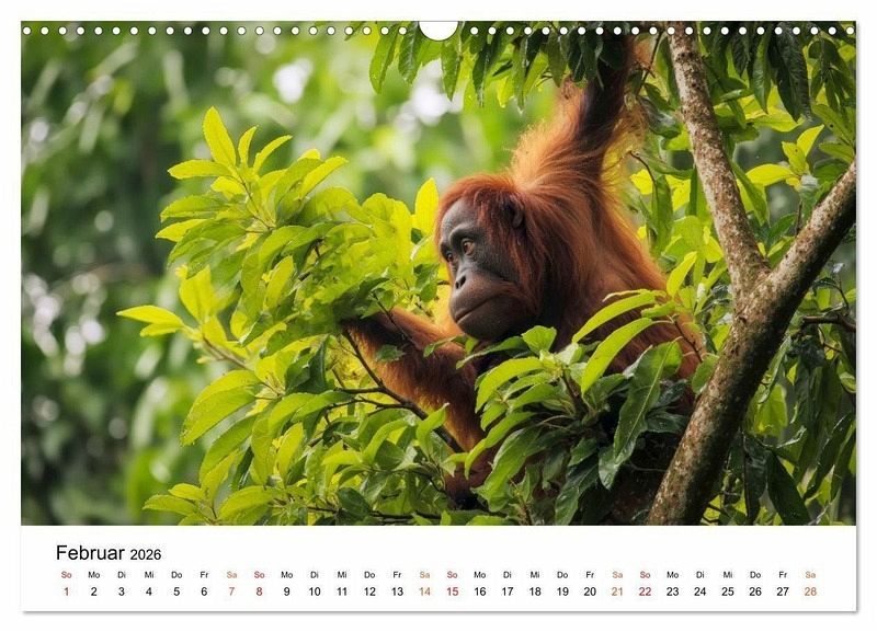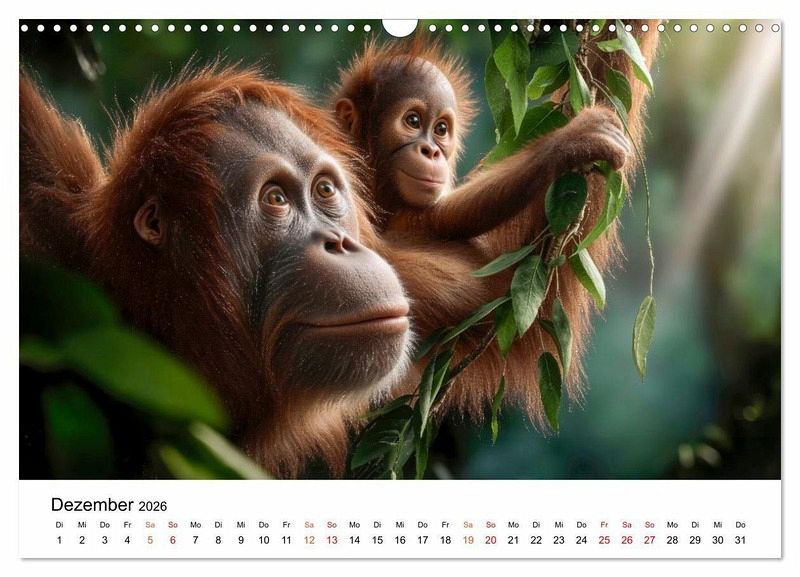 Orang-Utans: Sie leben hoch oben im grünen Dach des Regenwaldes - klug, voller Persönlichkeit und doch vom Aussterben bedroht. Majestätisch, intelligent und zutiefst berührend zeigen sie uns, wie Leben in den Baumkronen aussieht. Sie nehmen uns mit in ihre grüne Welt als die letzten großen Waldbewohner Asiens und erzählen von stillen Momenten, neugierigen Blicken und kletternden Kinderhänden. Gestaltet mit dem Auge fürs Detail berühren diese Bilder als Fenster in eine kostbare Tierwelt, wobei die grafische Umsetzung im Zusammenspiel klassischer Gestaltung und ausgewählter KI-basierter Methoden erfolgte. Dieser Kalender, ein visuelles Plädoyer für die größten Baumbewohner der Welt.