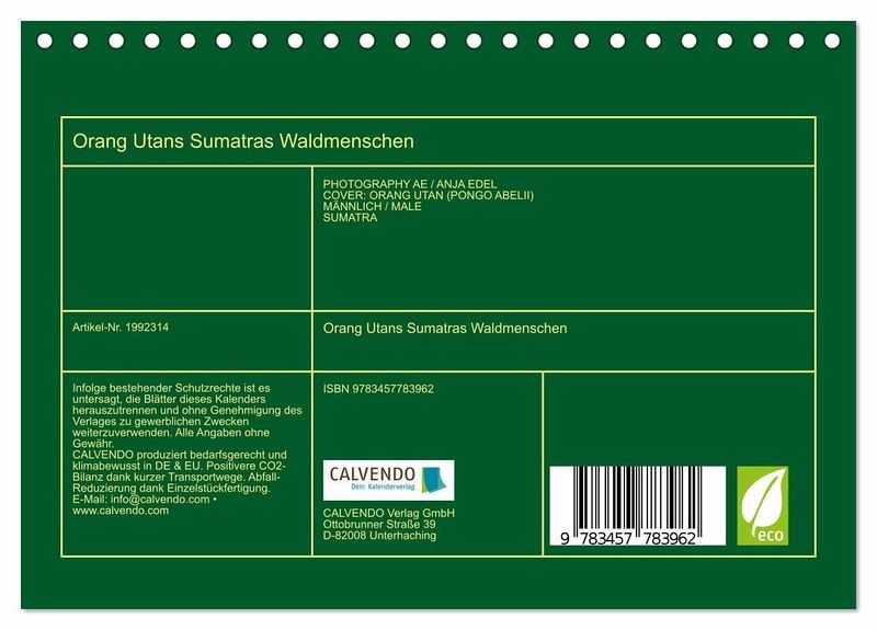 Januar: ORANG UTAN (PONGO ABELII) WEIBLICH / FEMALE - SUMATRA
