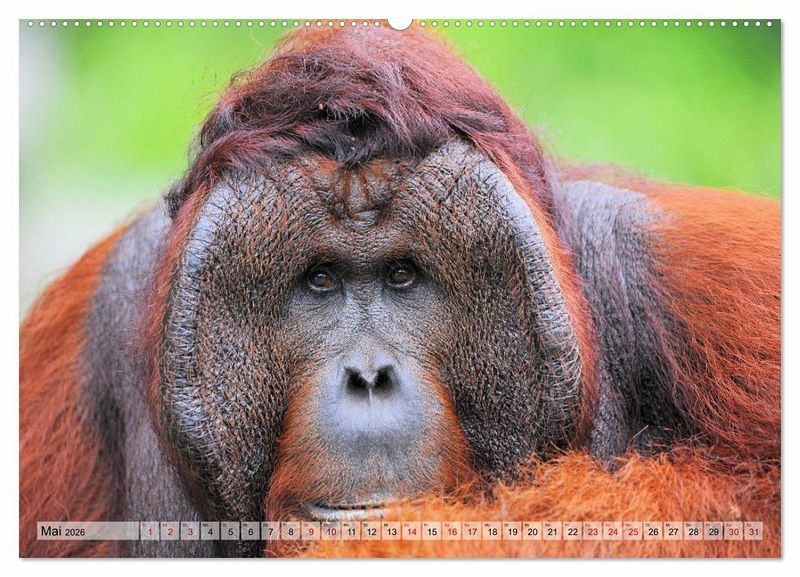 Im Indonesischen bedeutet Orang "Mensch" und Hutan "Wald" - Orang-Utans sind also "Waldmenschen". Orang-Utans gehören, wie Gorillas, Schimpansen und Bonobos zu den Großen Menschenaffen. Wir Menschen teilen uns mit dem Orang-Utan 96,5 % des Erbguts, sind uns also sehr ähnlich. Sie sind die größten und schwersten permanenten Baumbewohner der Welt; sicheres und effektives Klettern gehört für junge Orang-Utans daher zur Grundausbildung. Die Bilder diese Kalenders zeigen die Tiere in ihrem natürlichem Lebensraum im Regenwald Borneos, Indonesien.