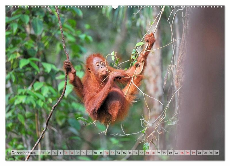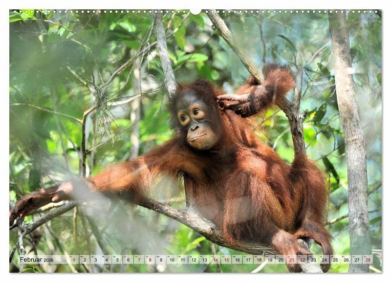 Die Bilder diese Kalenders zeigen die Tiere in ihrem natürlichem Lebensraum im Regenwald Borneos, Indonesien.