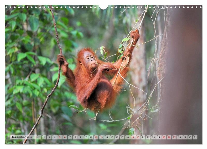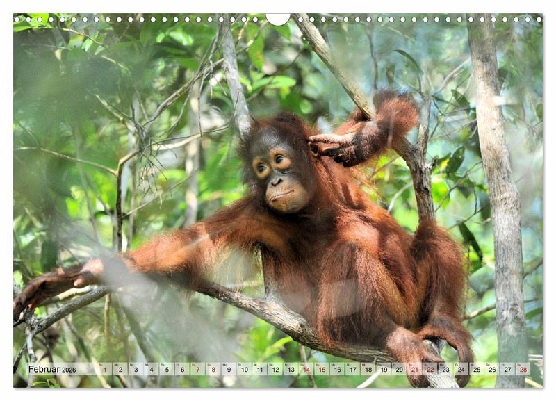 Die Bilder diese Kalenders zeigen die Tiere in ihrem natürlichem Lebensraum im Regenwald Borneos, Indonesien.