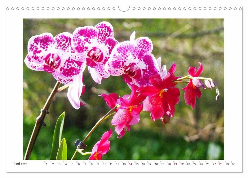 Von den Botanikern werden etwa 1000 Gattungen mit 15000 bis 30000 Arten anerkannt. Keine andere Pflanzenfamilie hat ein solches Spektrum, was Farben und Formen der Blüten betrifft. Dem Farben-Feuerwerk der Orchideen widmet sich dieser Kalender, der natürlich nur einen winzigen Ausschnitt der Pflanzenfamilie vorstellen kann. Erfreuen Sie sich an den gelungenen Porträtfotos Ihrer Lieblingsblume zu jeder Jahreszeit.