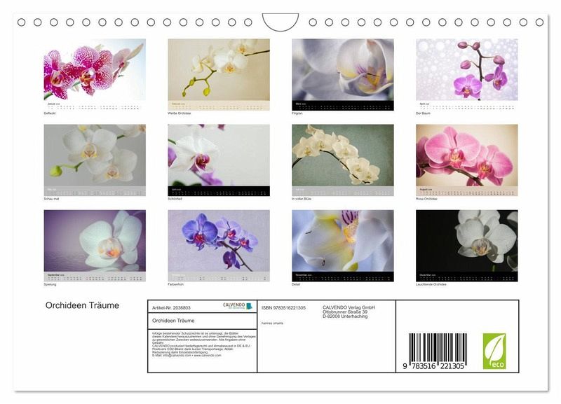QUALITÄT - Hochwertiger Fotokalender mit 12 wunderschönen Motiven auf lichtbeständigem Bilderdruckpapier, robuste Spiralbindung mit Aufhängebügel.NACHHALTIG - deutliche Abfallreduzierung durch bedarfsgerechte Einzelstückfertigung, umweltfreundliches FSC-zertifiziertes Papier, Produktion in Deutschland, klimabewusste Logistik.PERFEKTES GESCHENK - Kalender für Freunde und Familie, für Kinder und Erwachsene, jung und alt, zu Weihnachten, Geburtstag oder zwischendurch.VIELFALT - Bildkalender in verschiedenen Formaten, z.B. DIN A5, DIN A4, DIN A3 sowie DIN A2. Ob Naturmotiv, Gemälde oder Fotos, ideal für ein persönliches Wohlfühlambiente.Fotografien von Orchideen von Autor(in): hannes cmarits