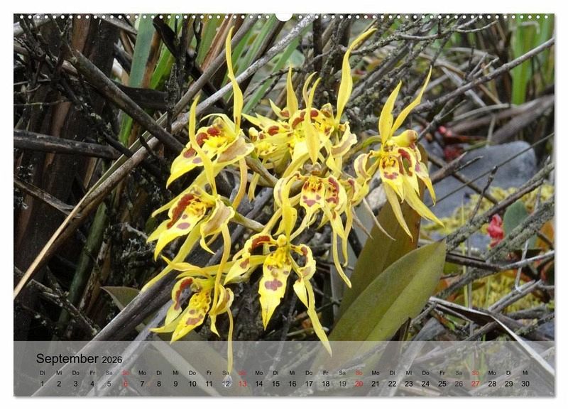 Ecuador ist eines der orchideenreichsten Länder der Erde. Dieser Kalender enthält Bilder von blühenden Orchideen aus der Andenregion, aufgenommen am natürlichen Standort.